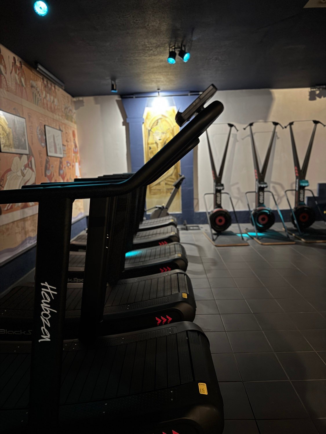 La pizzeria communique avec une salle fitness toute équipée.