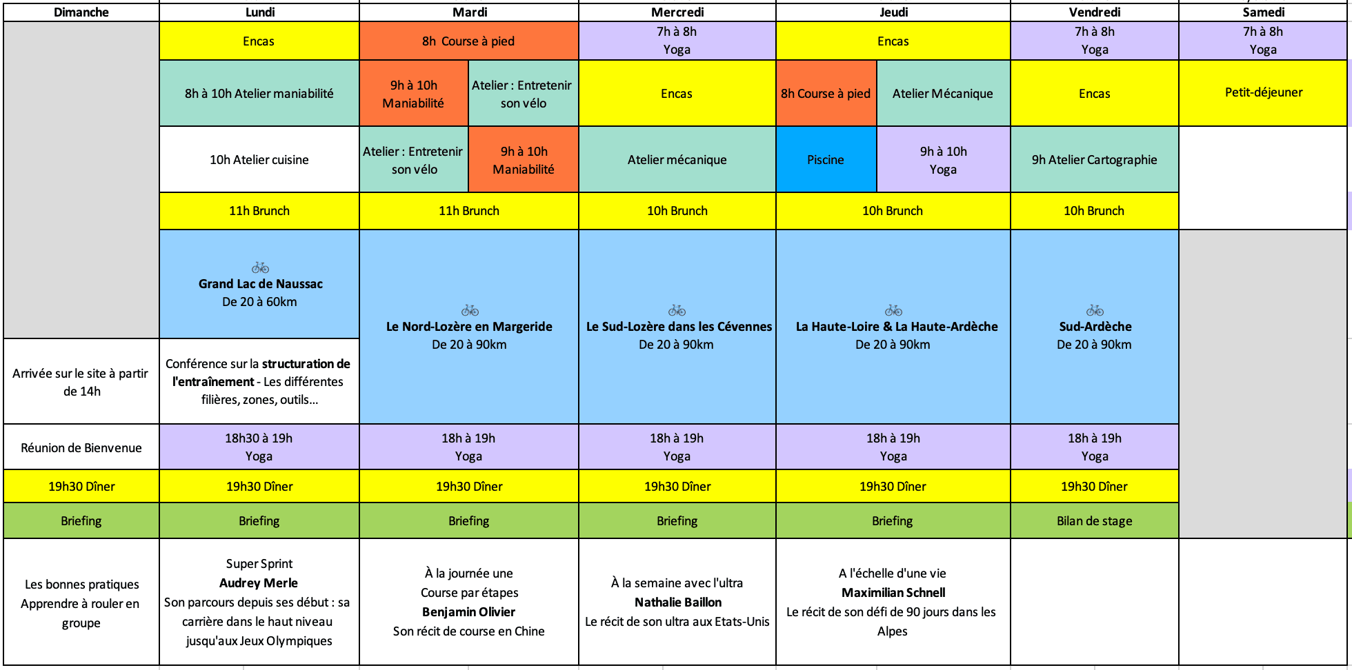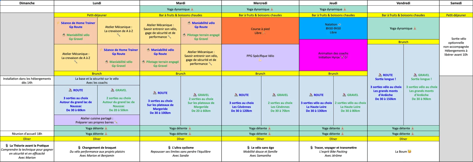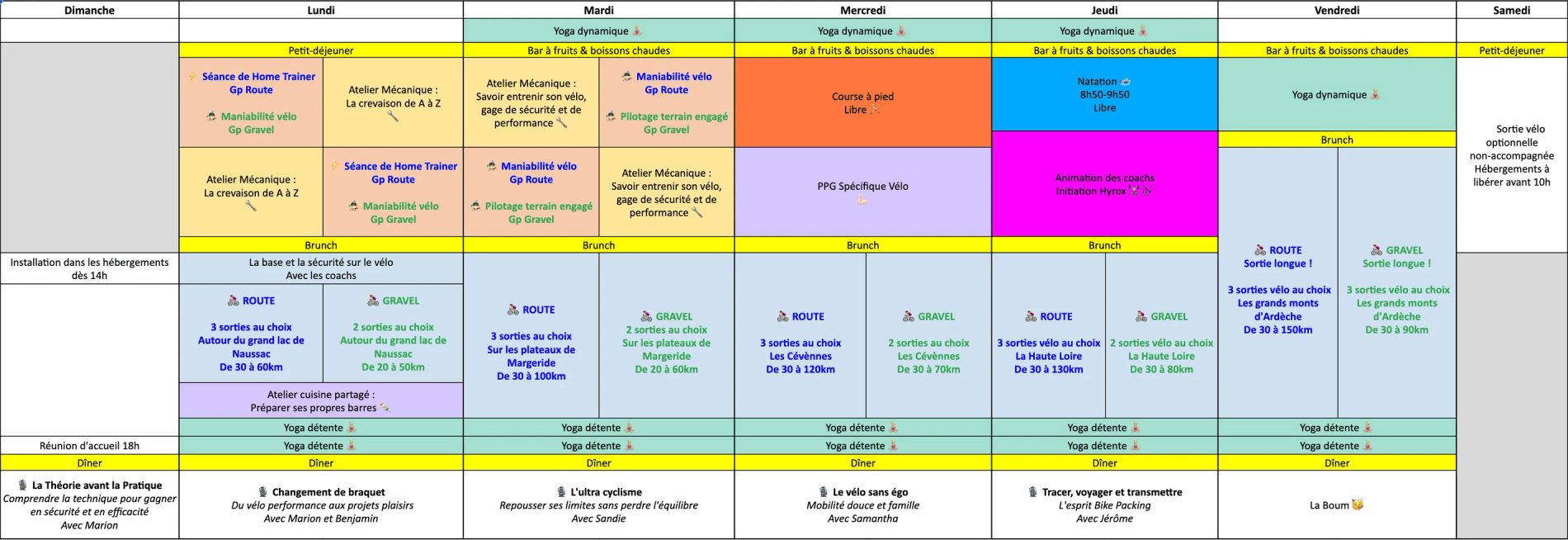 Ce programme est indicatif et varie et s'adapte au groupe, à la météo, aux envies & aux caprices du groupe 🤩