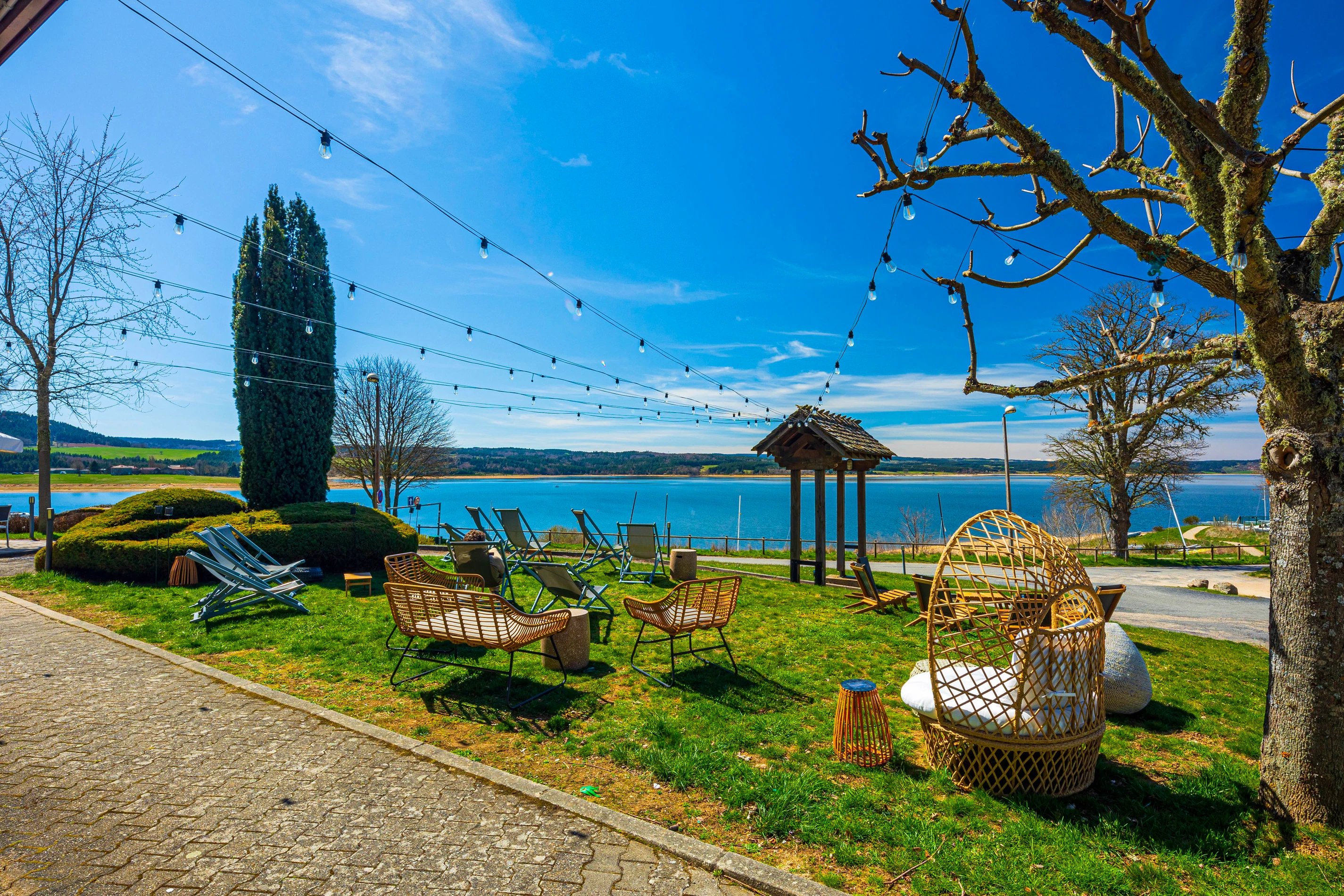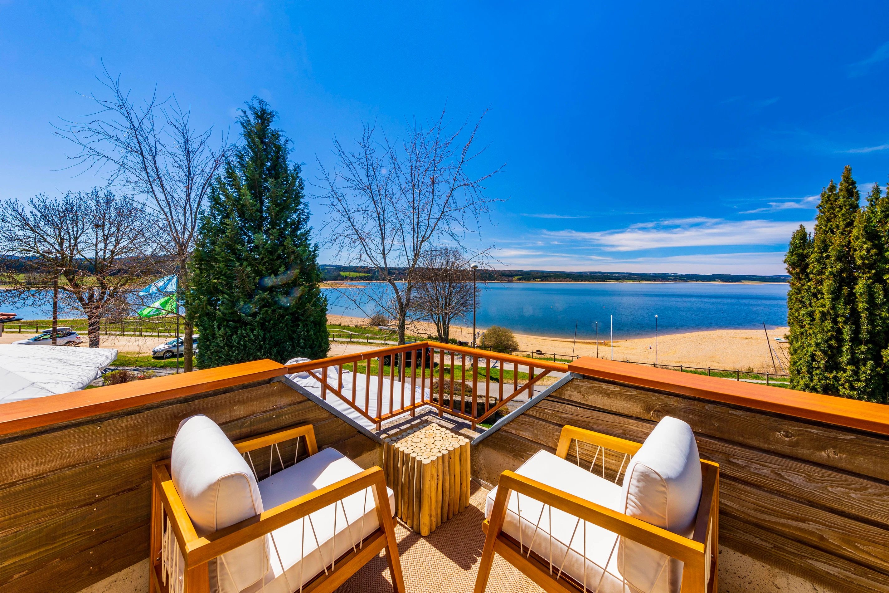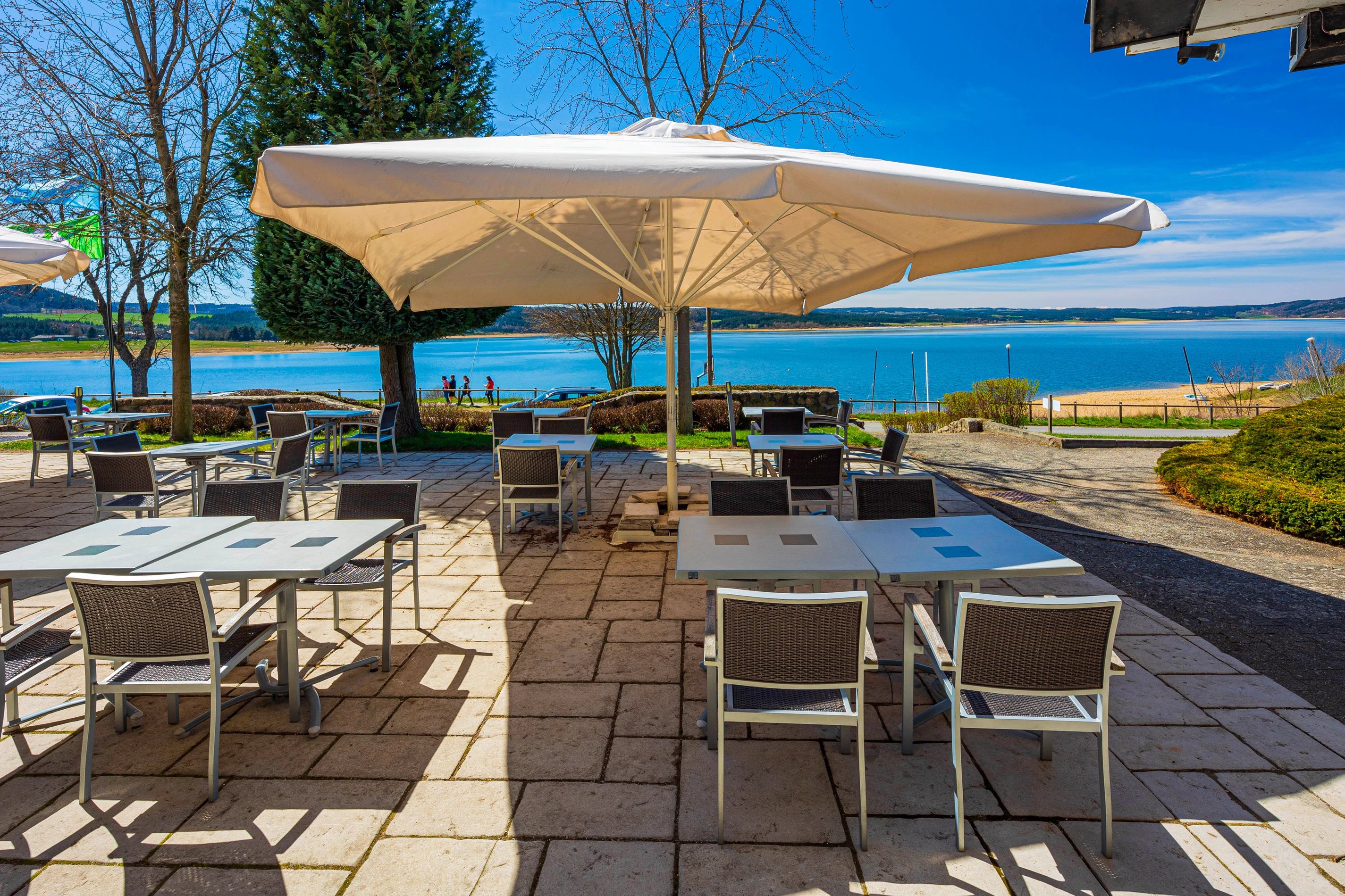 Strand aan de voet van het etablissement